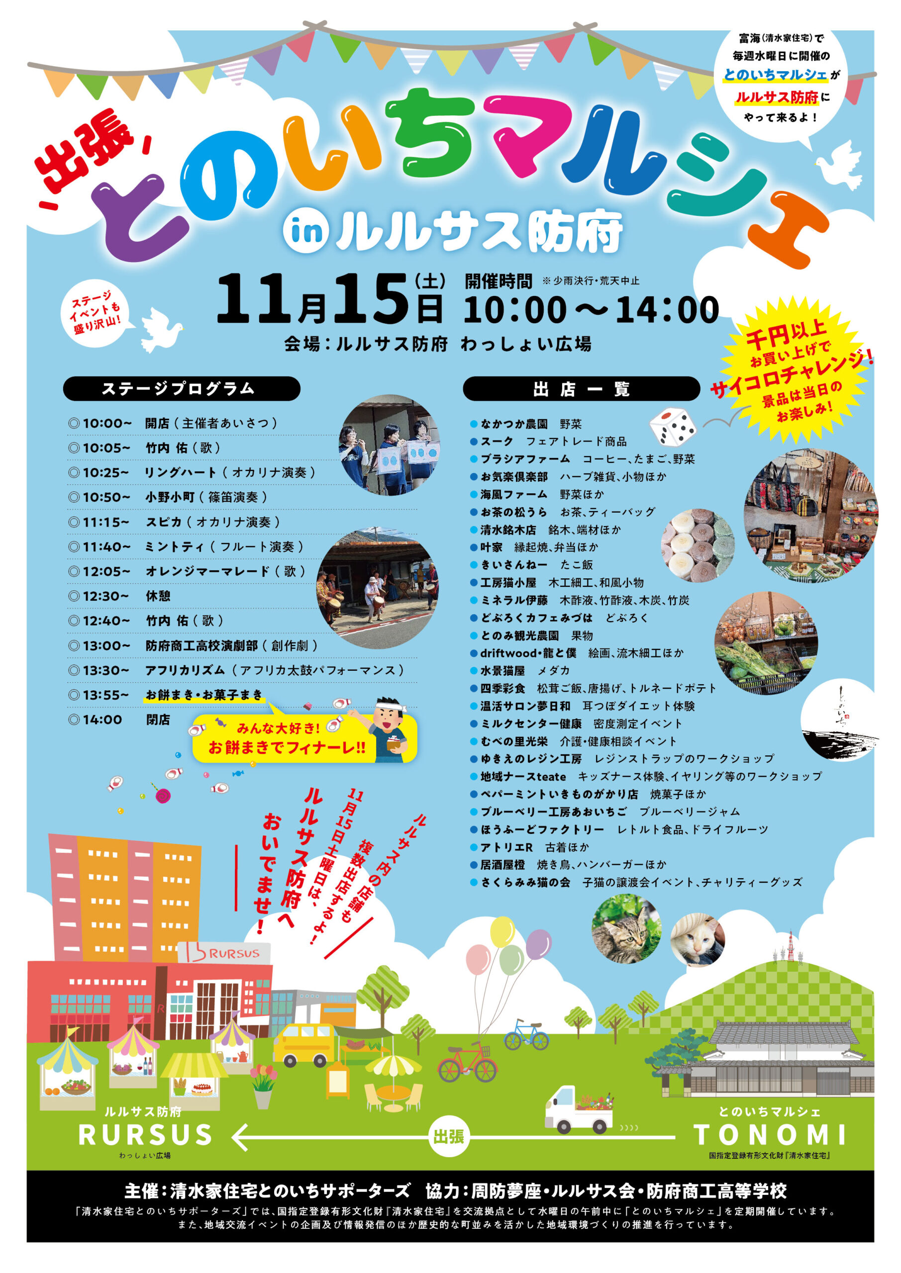 富海(清水家住宅)で毎週水曜日に開催の「とのいちマルシェ」が、ルルサス防府にやって来ます!
